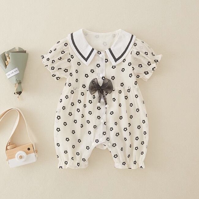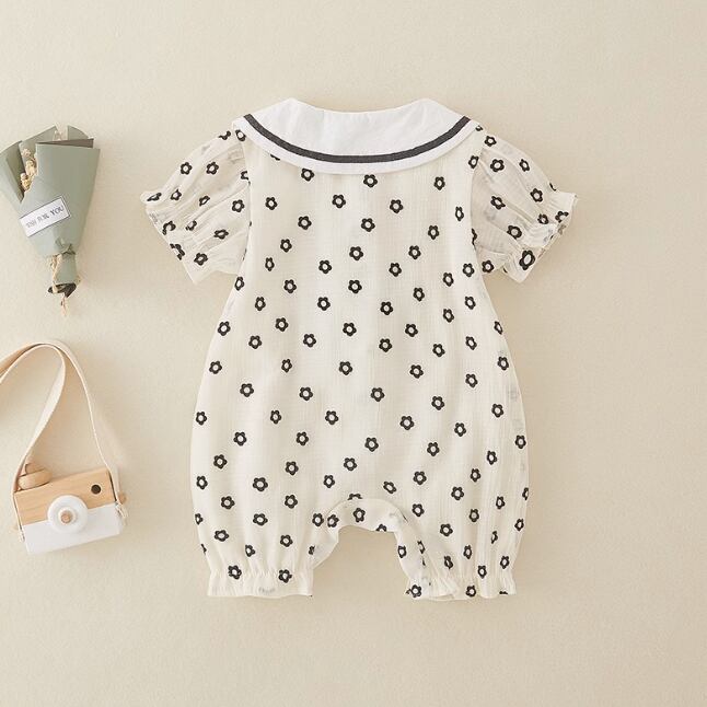 セーラーカラーのついた花の総柄のロンパースです。 -size- 66cm (身長50-60cm) 73cm (身長60-65cm) 80cm (身長65-73cm) 90cm (身長73-80cm) -color- one color